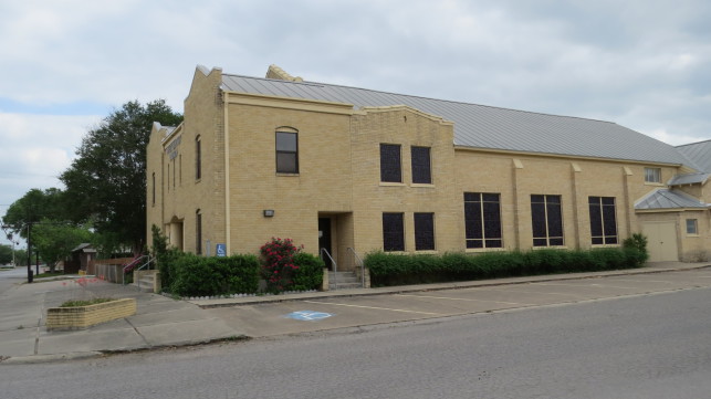 George W. West donated two lots to the church in 1923.[32] The first building came when the Baptists of Mikeska Community Church donated their interest in that building. FBC George West purchased the other Methodists’ interest and moved the building.[33] The pastor’s home was built in 1927 on West’s donated land while H.H. Spillyard was pastor. Another lot was purchased by the church later for a new parsonage.[34] In 1940, while Reverend W.R. Underwood was pastor, the Mikeska building was moved to the back of the lot; the frame structure was raised and a basement was added for Sunday School classrooms. Afterwards, a brick veneer was placed on the entire structure. The Mikeska building is still part of the educational building.[35]